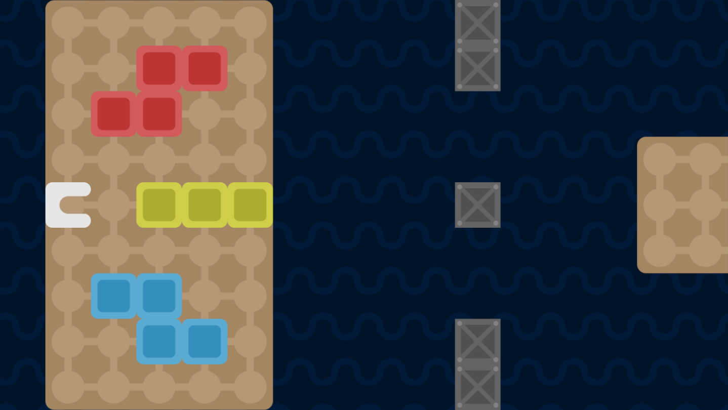 BRDG is a puzzle game about pushing blocks and making bridges. Blocks can be part of a group and that group will move together when pushed. In later levels, blocks can be added or removed from a group. Can you make a bridge to the end in all 28 levels?
