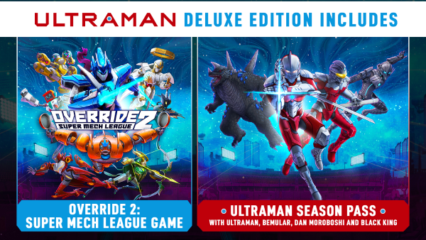 Override 2: Ultraman Deluxe Edition includes the main game, Ultraman Season Pass: Containing 4 super-charged Ultraman characters – Ultraman, Bemular, Dan Moroboshi, and Black King.
