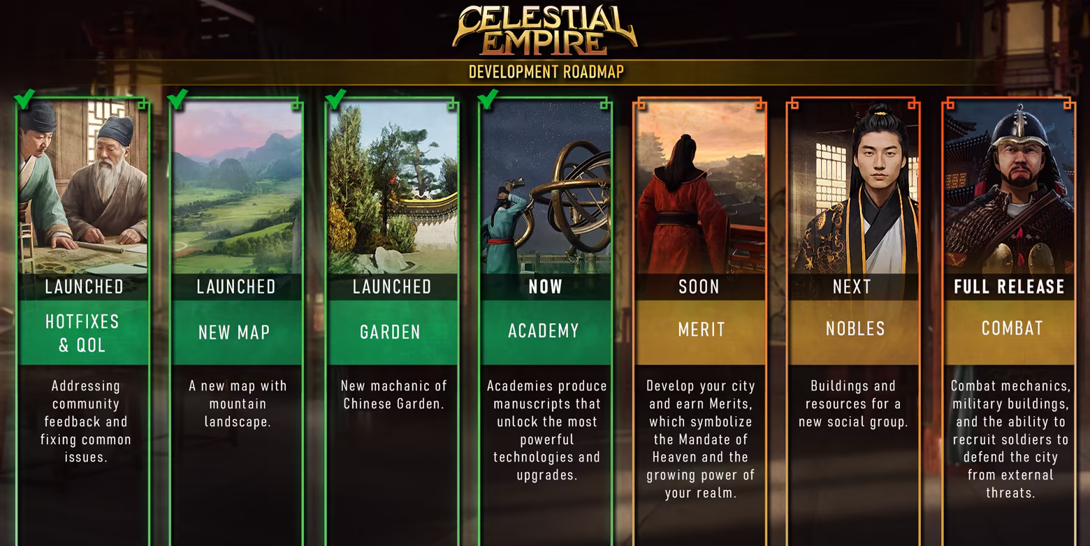 We have been working with our community for many years now! You could watch our game's growth through dev blogs, playtests, or festival demos. A lot was going on, and each time, your opinion was critical to us, strongly influencing the development of Celestial Empire. We want to keep it that way – thanks to Early Access, we will be able to understand your needs better!”