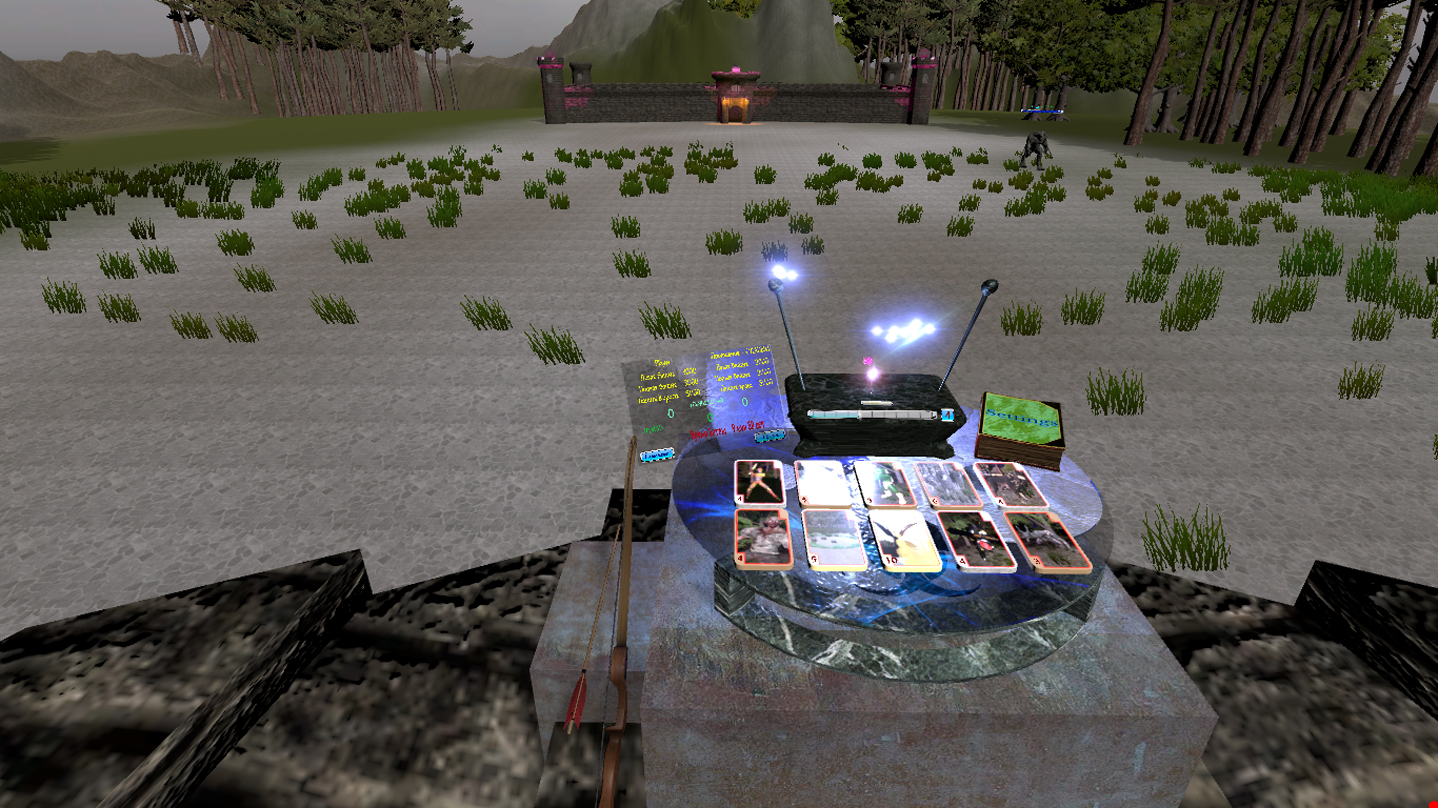 You appear in the throne room of your castle in the game and, moving between tables, you can set up your battle deck, buy new cards and improve existing cards for coins received from victories in battles.