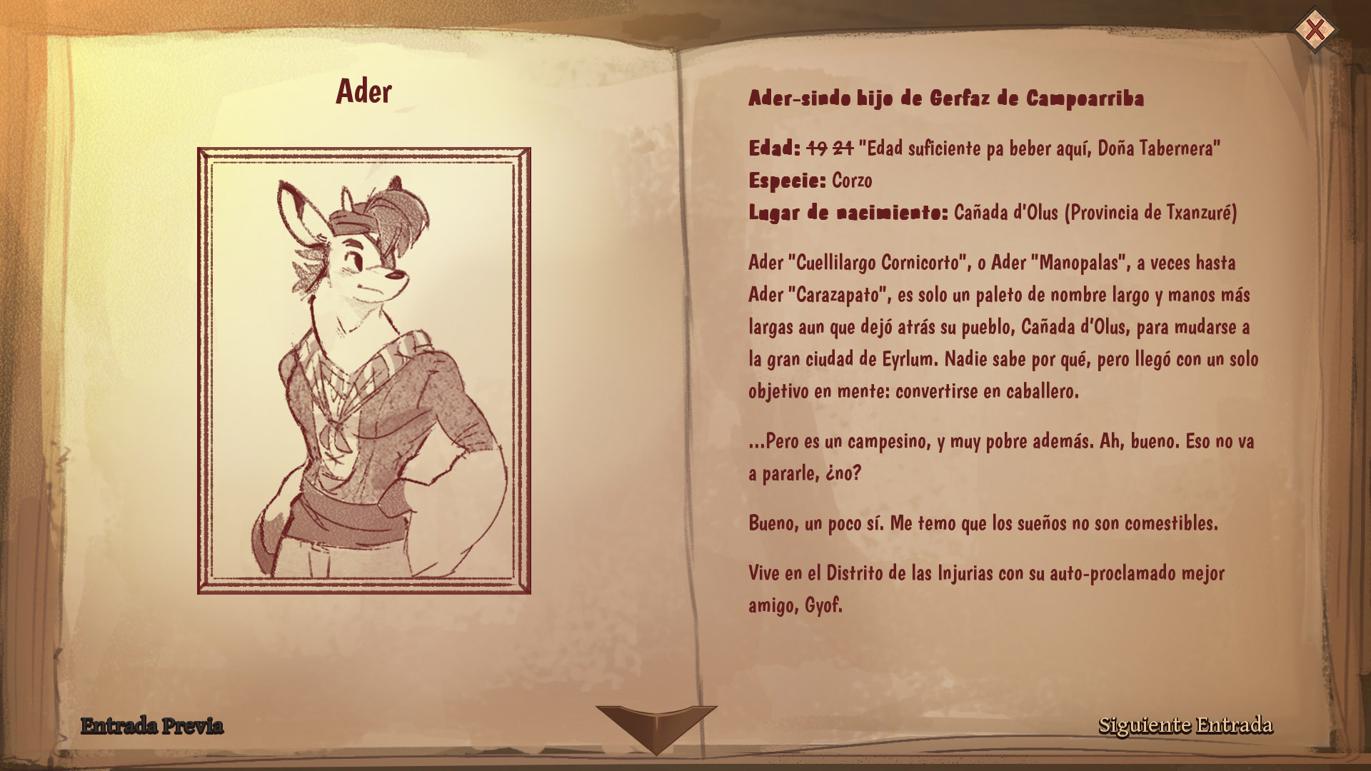 Gracias a su trasfondo profundo y lleno de historia, el mundo de The Hayseed Knight se extiende mucho más allá de la trama y podrás sumergirte en él leyendo la enciclopedia incluida en el juego.