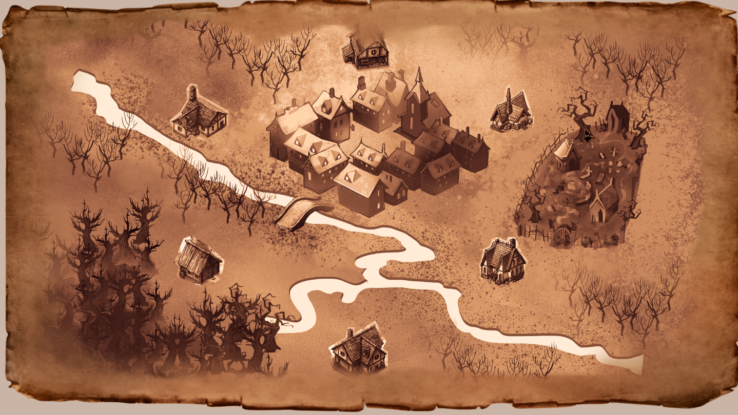 • Multiple locations: Travel the town, graveyard and hollow, looking for cursed ingredients for your alchemy and rituals.