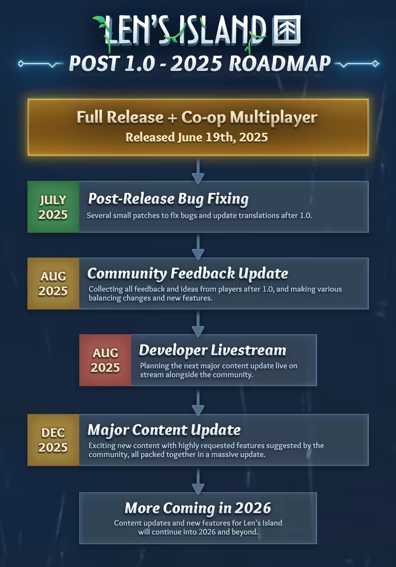 Embark on your journey solo or team up with up to 7 friends in seamless online co-op. Len’s Island is carefully balanced for both singleplayer and multiplayer, offering a rewarding experience whether you're building alone or battling alongside others.