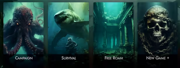 Explore wrecks, reefs, caves, ruins, and terrifying open waters that will test your thalassophobia.