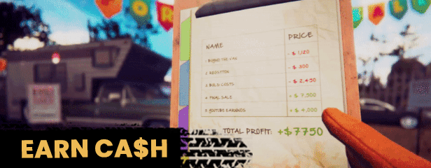 Use the money you have earned to bid on a range of new caravan wrecks. Invest in repairs, renovations and adequate equipment to prepare the vehicle as expected by future buyers, specific to the selected region of the US. If you do not over-invest, you should have a lot of cash left, which you can allocate for the development of your office, workshop and for subsequent campers.
