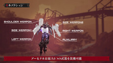 外部装甲「アーセナル」は、アーマー部位の組み合わせによって機動力や防御力など機体性能が変わる。