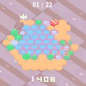 Control a cloud and let it rain on a floor of hexagonal panels. The goal of the game is to turn all panels to water within the time limit to advance to the next level.