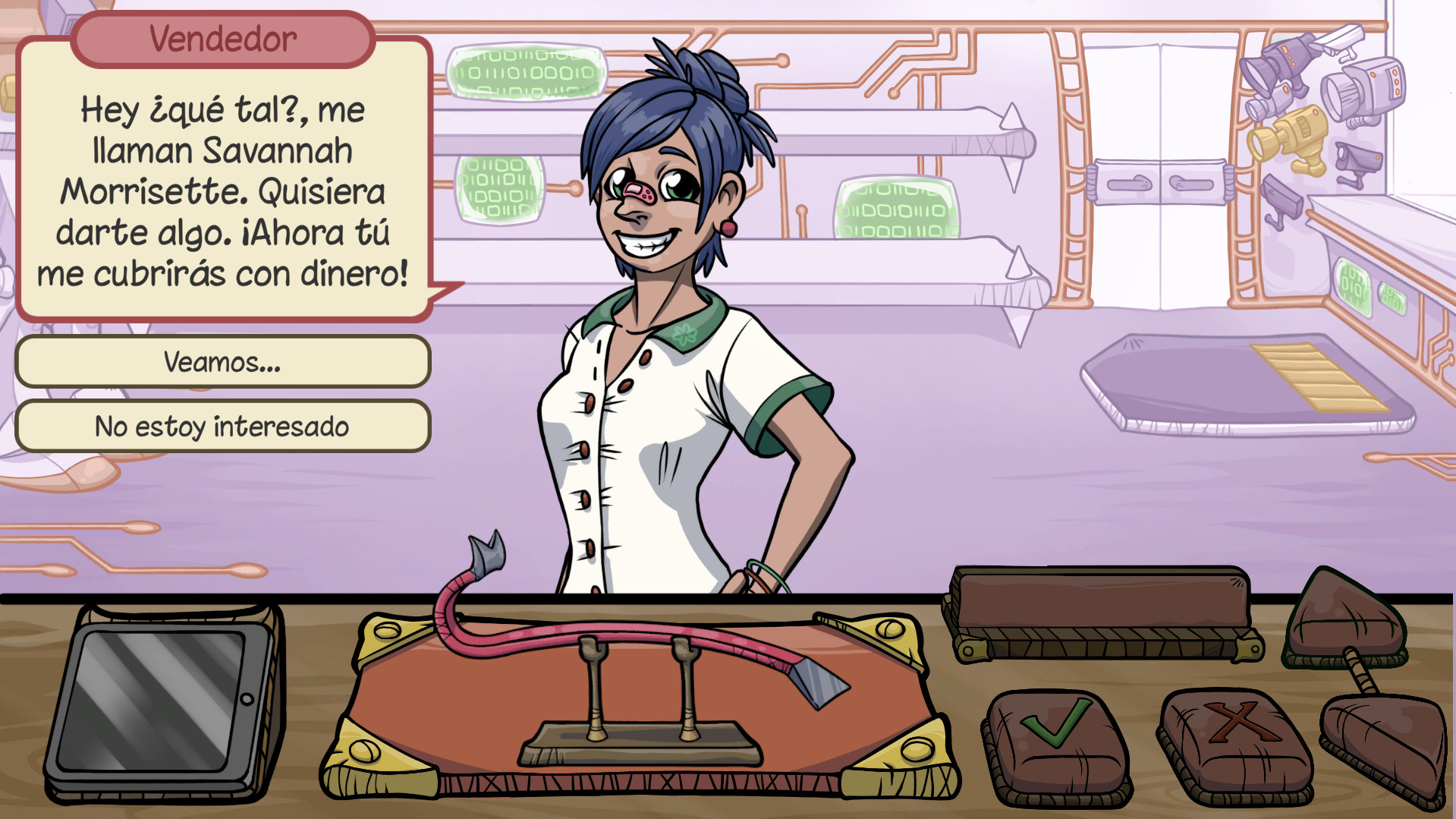 Pero ten cuidado, el camino del negociante no es todo color de rosa, y podrías encontrarte en situaciones donde solo tus habilidades te harán prosperar entre estafadores, clientes ingenuos, y gente astuta lista para poner a prueba tu pericia.