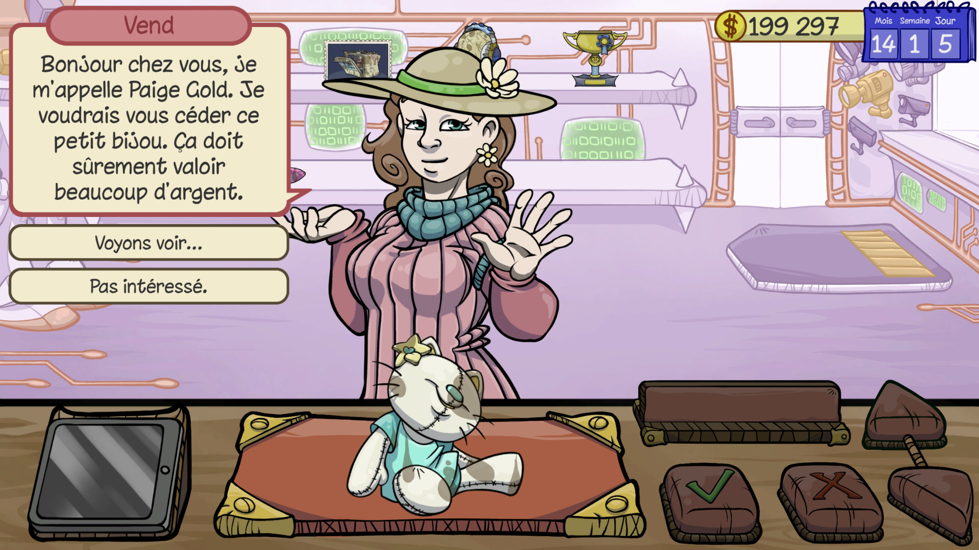 Mais attention : le chemin d'un antiquaire est semé d'embûches et certaines situations mettront vos compétences à l'épreuve afin de prospérer dans un monde d'arnarqueurs, de clients naïfs et autres personnages pernicieux !