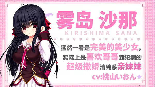 主人公的亲妹妹。清纯可爱,成绩优秀,