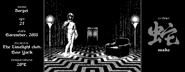 This is the first episode of a bigger project called Critters for Sale. In this episode, titled "Snake", you play as Sergei Volkov who receives a cryptic text message in the middle of the night inviting him to the Limelight club.