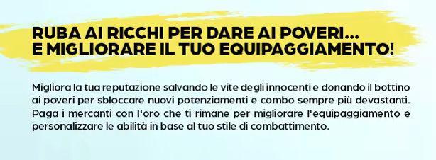 Affronta gli uomini dello Sceriffo di Nottingham e guida la rivolta in modalità 1P o co-op fino a 4P. Impersona uno degli Allegri compagni, esegui potenti combo e libera gli oppressi in questa storia distopica ispirata alla leggenda di Robin Hood.