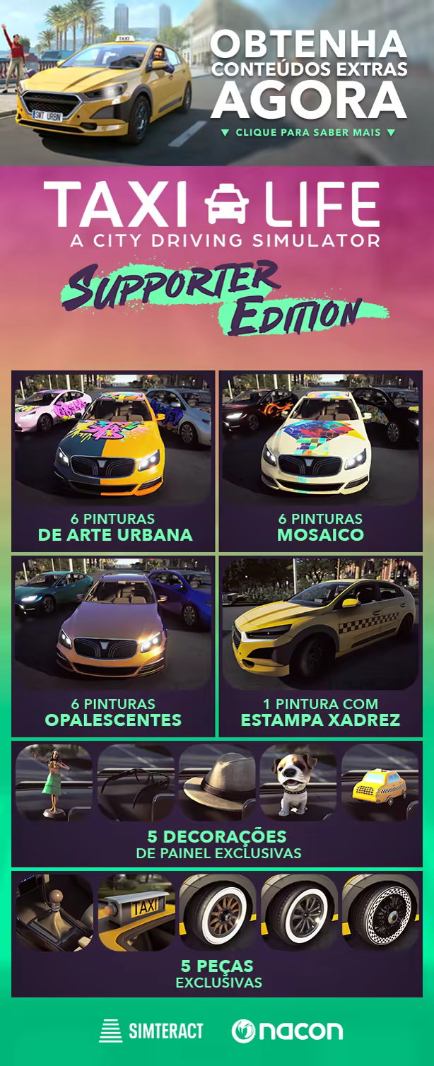 Taxi Life é compatível com os controles de jogo e periféricos de volante mais usados.