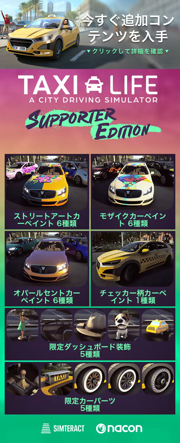 「Taxi Life」は主要なハンドルコントローラー機器を利用してお楽しみいただけます。