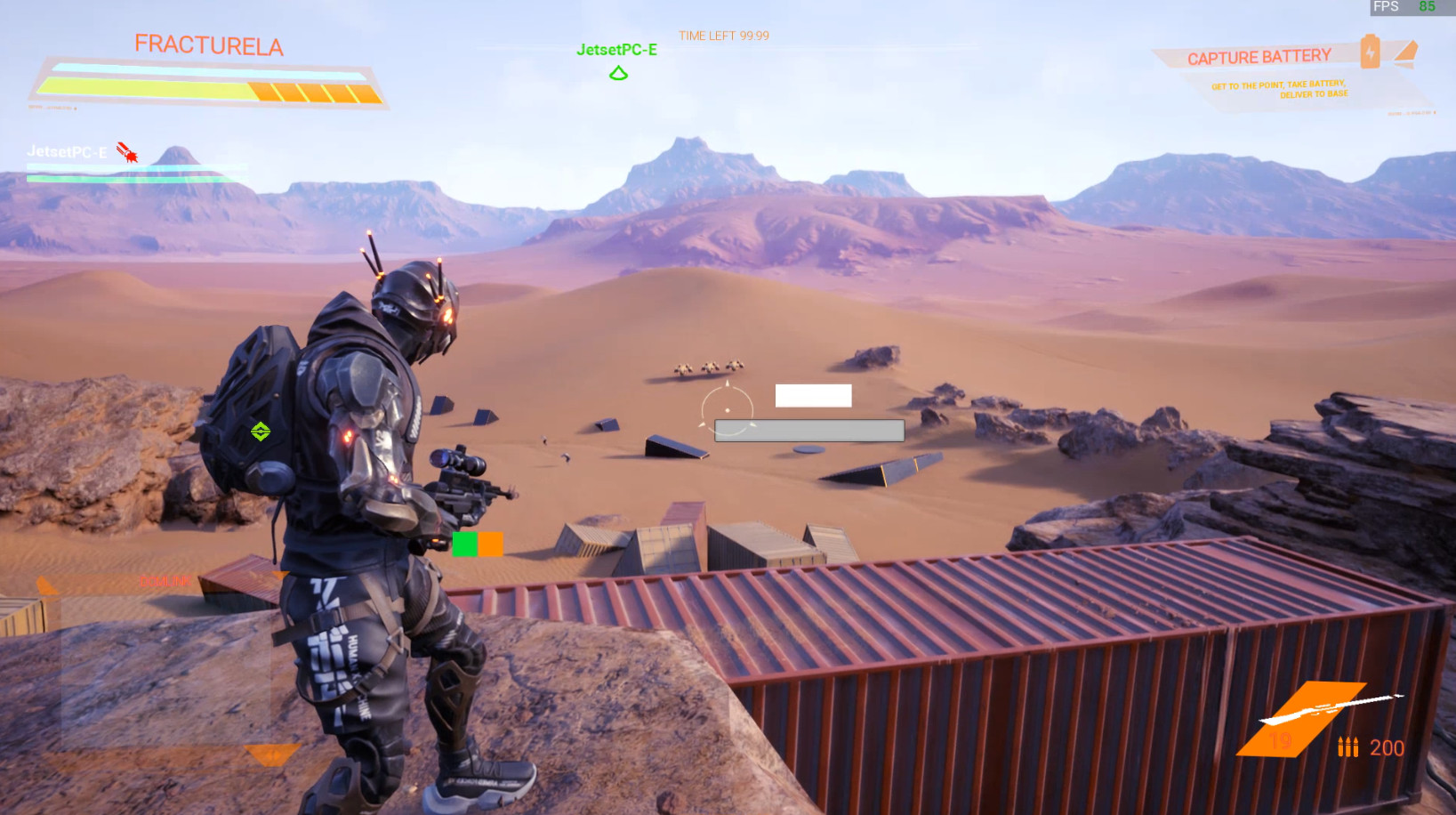 The early access version is a multiplayer demo with hover vehicles, land vehicles, NPC's, multiple weapons, grenades and a battery delivery mission. Players can add others to their team and cooperate to deliver the battery, or capture the flag.”