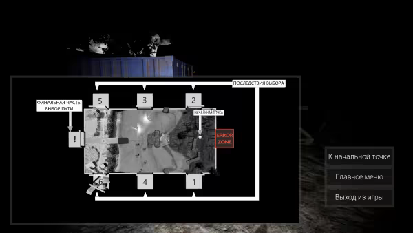 2. Press the " Esc "key on the keyboard, and a menu opens in front of us, where we can see the map, and on the map, the "Starting point" where we are. On the map, we understand where to go, we start our way to the 1st "consequence of choice", go to the 3rd step.