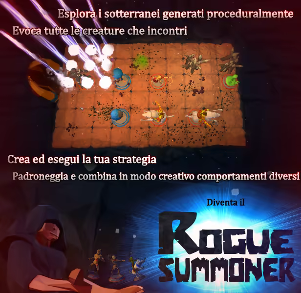 Rogue Summoner è un roguelike tattico a turni su evocazione strategica di creature da combattere al posto tuo. Evoca tutte le creature che incontri, dai minions innocui ai potenti boss e conquista tutti i sotterranei per diventare l'Evocatore Rogue.