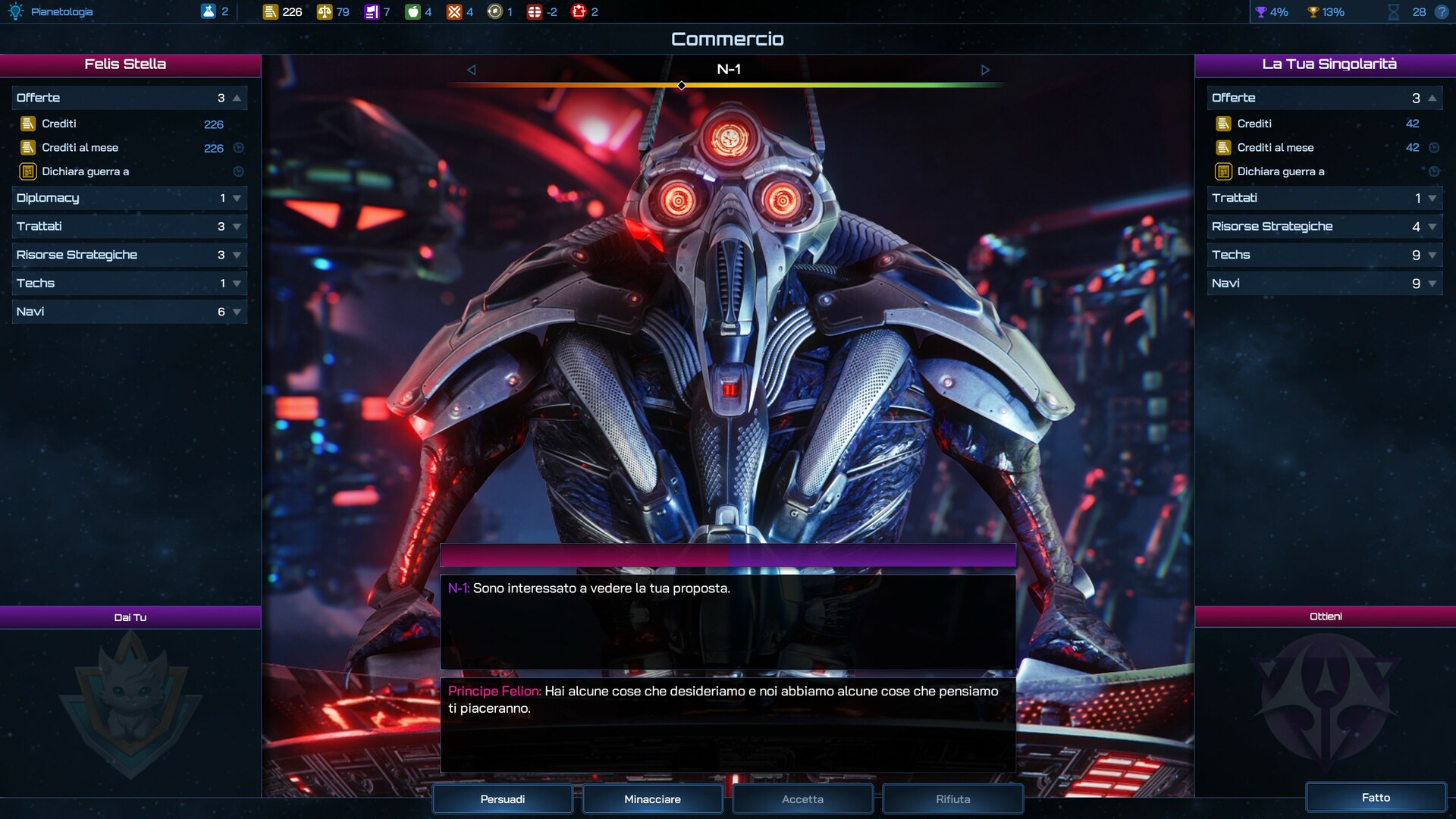 Esplora, Espandi, Sfrutta ed Estingui sono solo l'inizio! Il nostro narratore di gioco è combinato con un sofisticato stratega AI per garantire che l'universo vivente e ricco di lore che stai vivendo sia anche popolato da avversari che seguono i loro propri programmi e hanno l'intelletto per realizzarli.