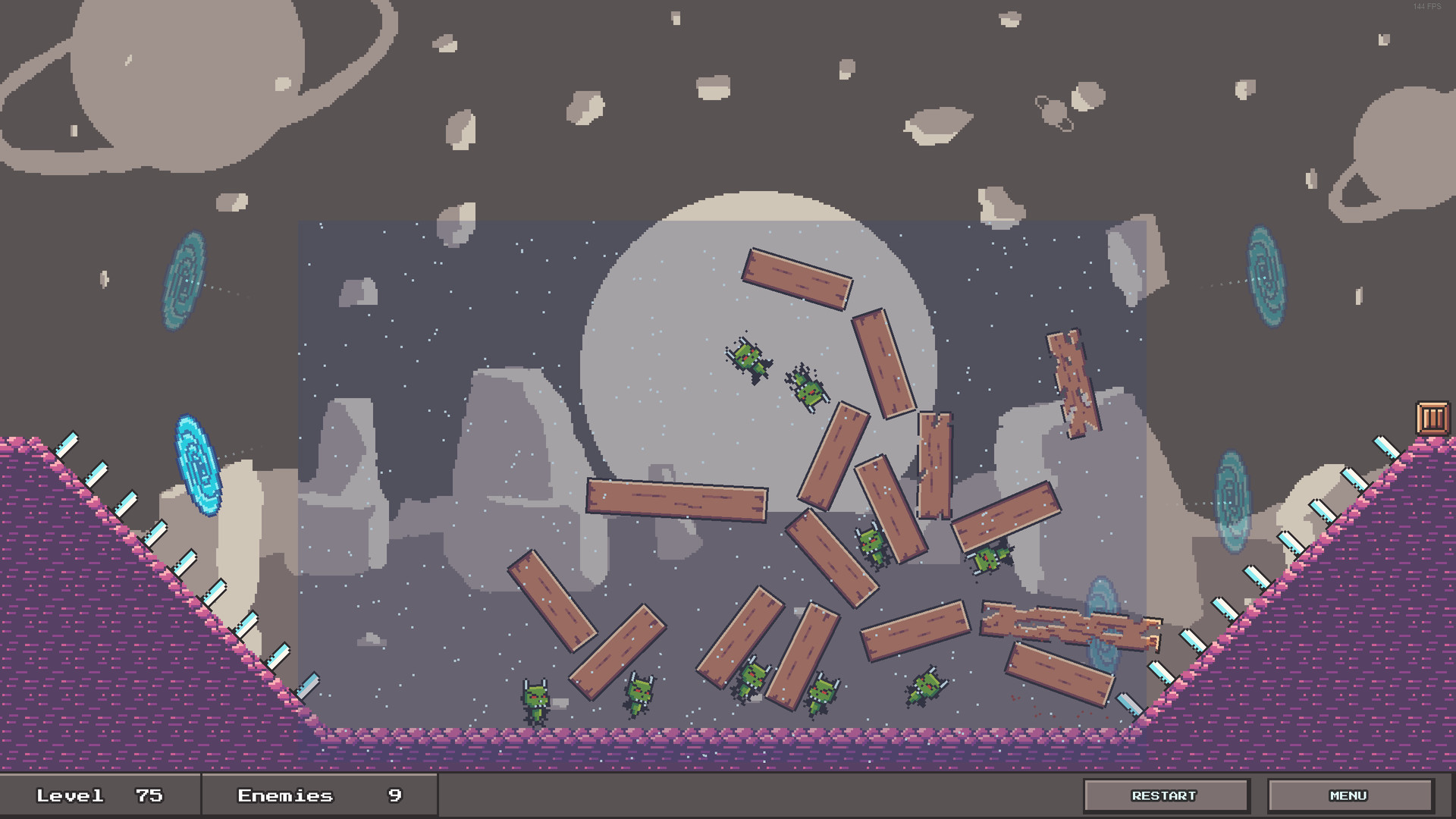 Portability is a 2D physics game where you teleport and destroy objects to solve puzzles.
