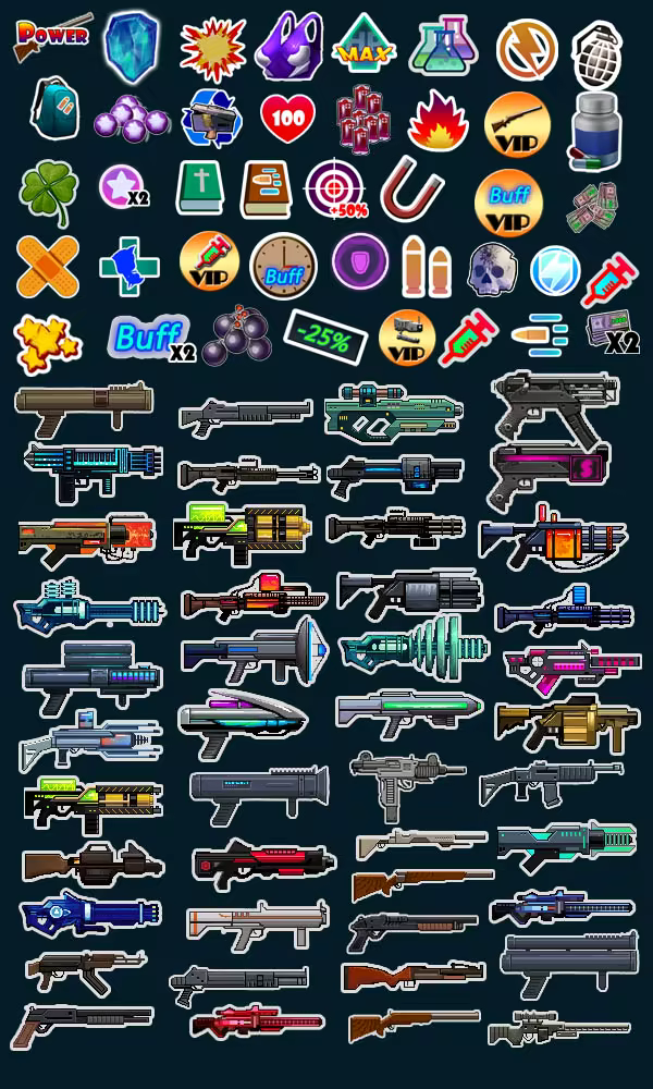 This is a survival shooting game.There are much gameplay. Including horizontal action games, clear version shooting games, roguelike, ARPG.