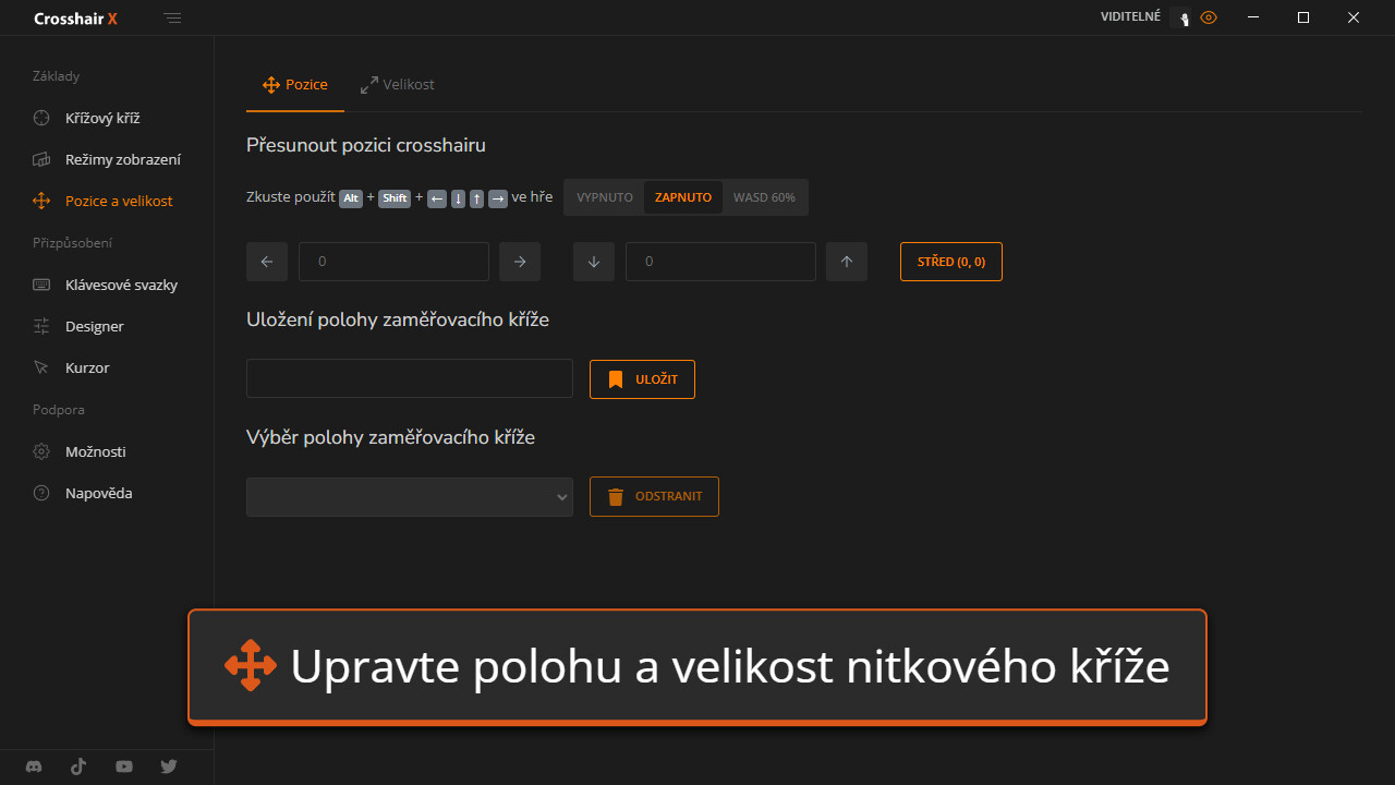 • Pozice: Zobrazte svůj zaměřovač na libovolném monitoru a spravuj te uložené pozice pro různé hry