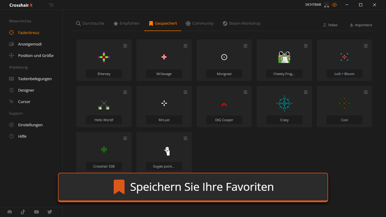 • Bilder: Lade jedes Bild hoch, das du als Crosshair überlappen möchtest