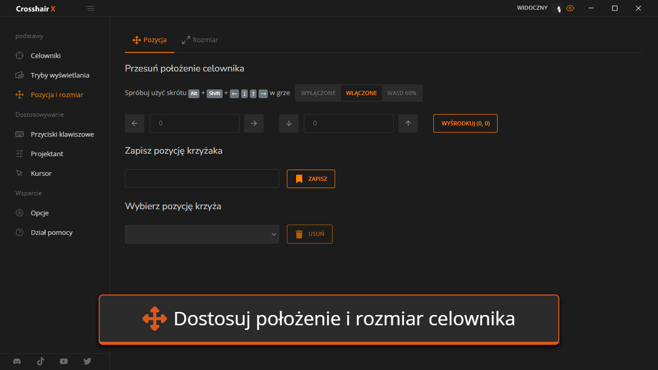 • Lokalizacja: Dostosowywanie współrzędnych X i Y celownika