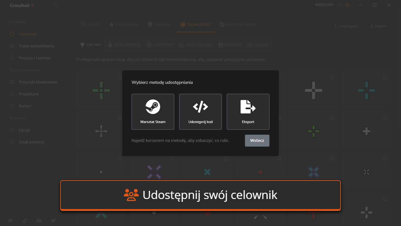 • Eksport: Zapisz celownik na komputerze jako .PNG lub .SVG