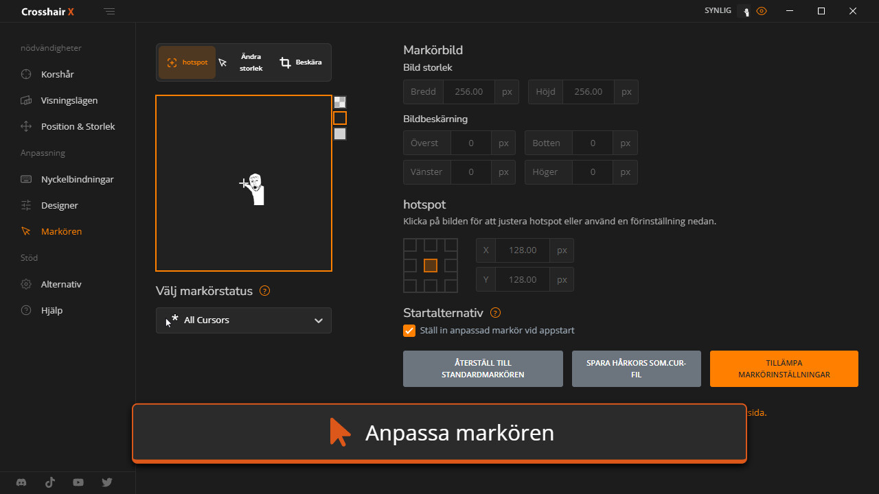 Få en konkurrensfördel genom att anpassa ditt hårkors för att vara tydligt och precist i alla spel du spelar. Du kan börja med en utvald pro-hårkors eller en gemenskapsdesign och sedan göra justeringar för att skapa en anpassad spelningslösning som tar din mål till nästa nivå.
