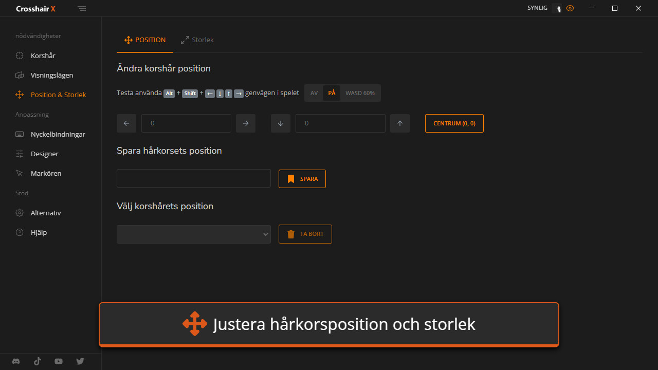 • Placering: Justera X- och Y-koordinaterna för hårkorset