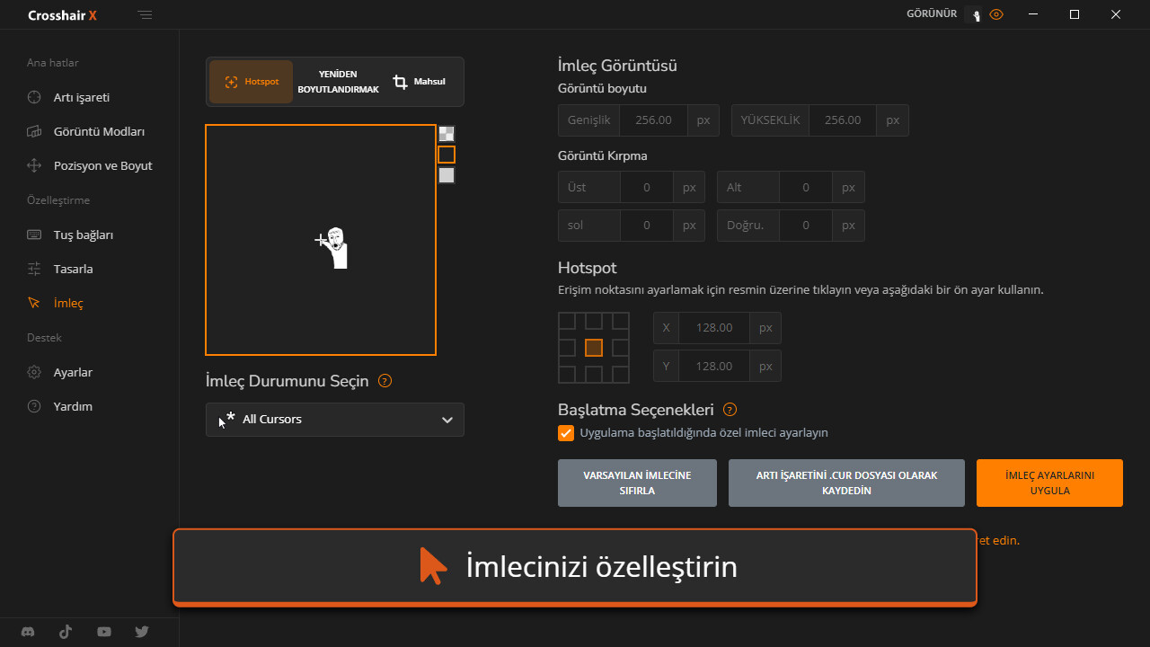 • Açma-Kapama: Nişangahınızı farklı fare durumları ve klavye kısayollarıyla görünürlüğünü değiştirin