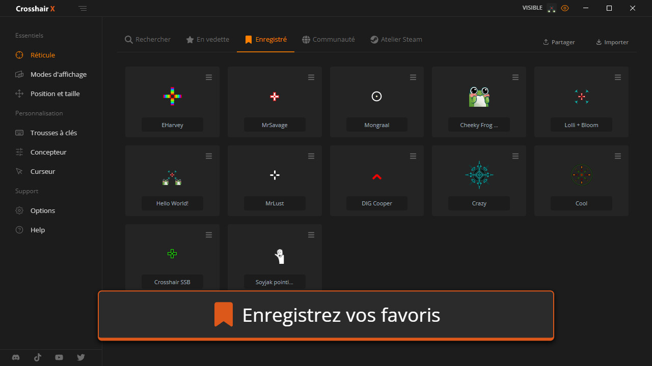 • Communauté: Explorez des milliers de designs créés par la communauté de Crosshair X