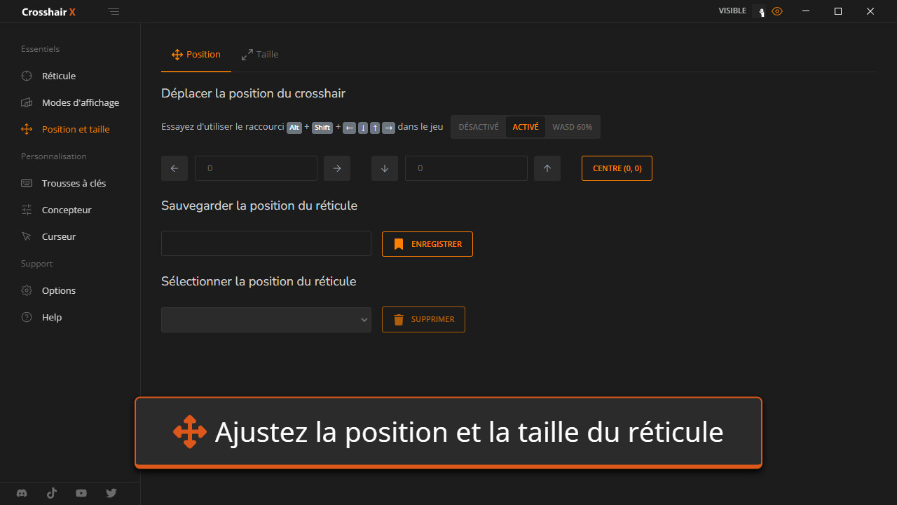 • Positions: Affichez votre réticule sur n'importe quel moniteur et gérez les positions enregistrées pour différents jeux