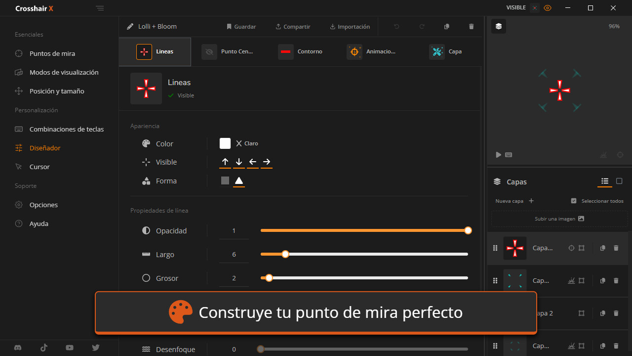 • Comunidad: Explora miles de diseños creados por la comunidad de Crosshair X