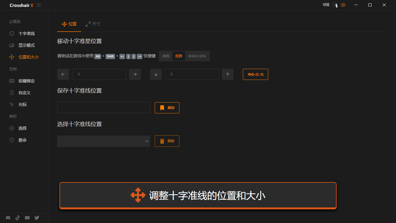 • 位置: 在任何显示器上显示您的十字准星,并为不同的游戏管理已保存的位置