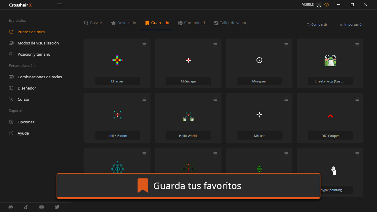 • Comunidad: Explora miles de diseños creados por la comunidad de Crosshair X