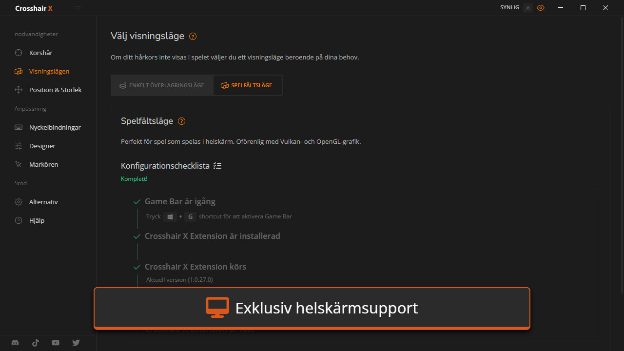 • Exklusiv Fullscreen med Game Bar Extension: Game Bar är en pålitlig och säker spelöverläggning som är byggd av Microsoft för PC-spelare. Det här är den säkraste och mest säkra sättet att överlägga spel.