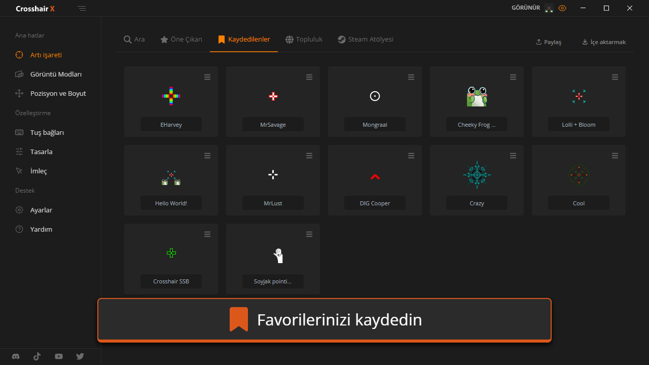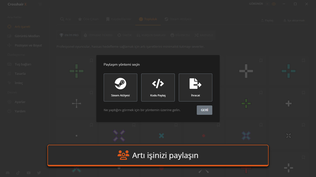 • Topluluk: Crosshair X topluluğu tarafından oluşturulan binlerce tasarımı keşfedin