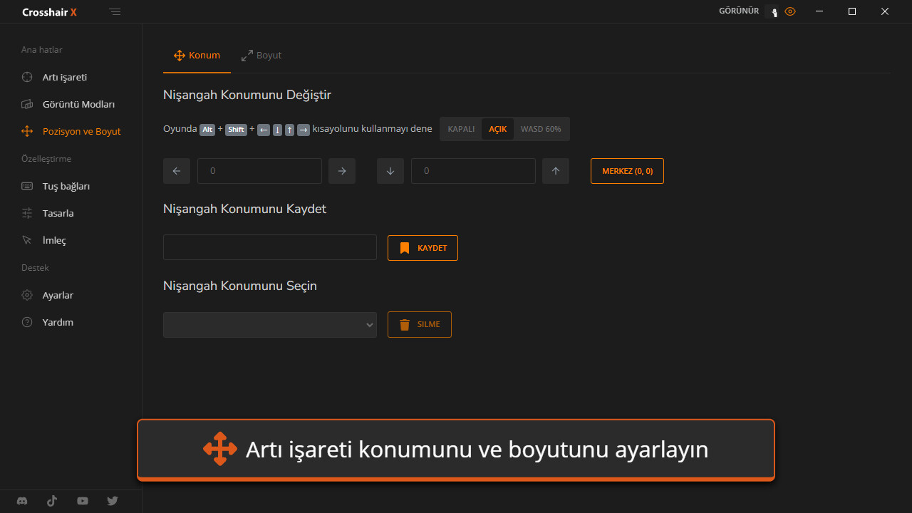 • Pozisyonlar: Nişangahınızı herhangi bir monitöre görüntüleyin ve farklı oyunlar için kaydedilmiş pozisyonları yönetin