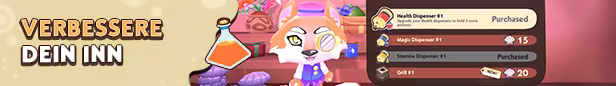 Kaufe Verbesserungen beim örtlichen Warenwolf, um neue Gegenstände freizuschalten, dein Team effizienter zu machen und dein Inn noch besser auszustatten.