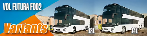 El Futura FDD2 añade el autobús de dos pisos de VDL a tu flota en dos variantes: 131 y 141. Desarrollado bajo licencia oficial de VDL, este DLC te trae el Futura FDD2 con todo detalle, funcionalidad y audio.