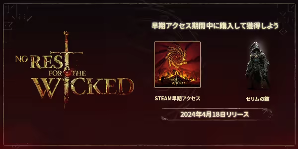 “「No Rest for the Wicked」は、多種多様なシステム、機能、物語を含む大型タイトルです。2024年の早期アクセス公開を予定し、鋭意開発を続けています。これまで私たちが作ってきたなかで最も野心的なゲームとなるため、皆さんからのご意見・ご感想を参考にして「Wicked」のシステムや機能を全面的にブラッシュアップし、できる限り最高の作品にしたいと思っています。”