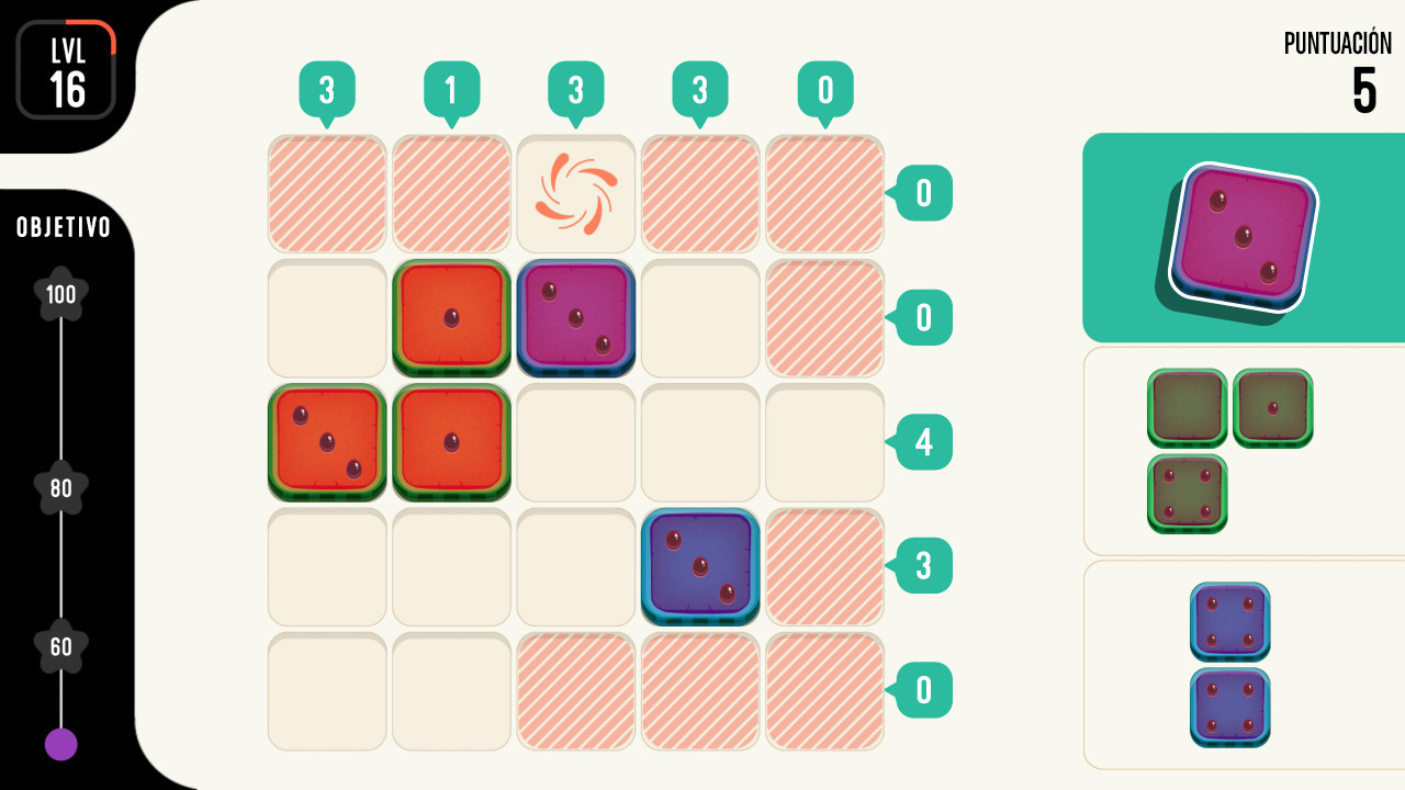 Al combinar puzles con números del estilo de los sudokus y bloques que van cayendo, el objetivo de TENS! es sencillo: coloca un dado en el tablero, saca dieces en cualquier fila o columna y despeja el tablero para ganar.