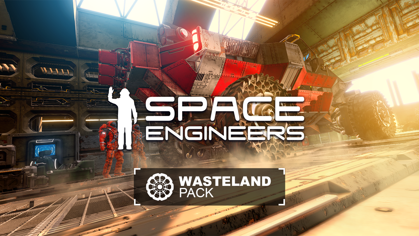Space Engineers “Wasteland” pack includes Off road wheels, Exhaust pipes, Buggy cockpit, 2 View port blocks, Barred Window, Offset Light, Offset Spotlight, 3 Storage Shelves, Concrete Armor Skin, Dust Armor Skin, Rust 2 Armor Skin, Retro future Armor Skin, Scavenger Character skin, 2x2 Off-road Wheels and 2 new character emotes.