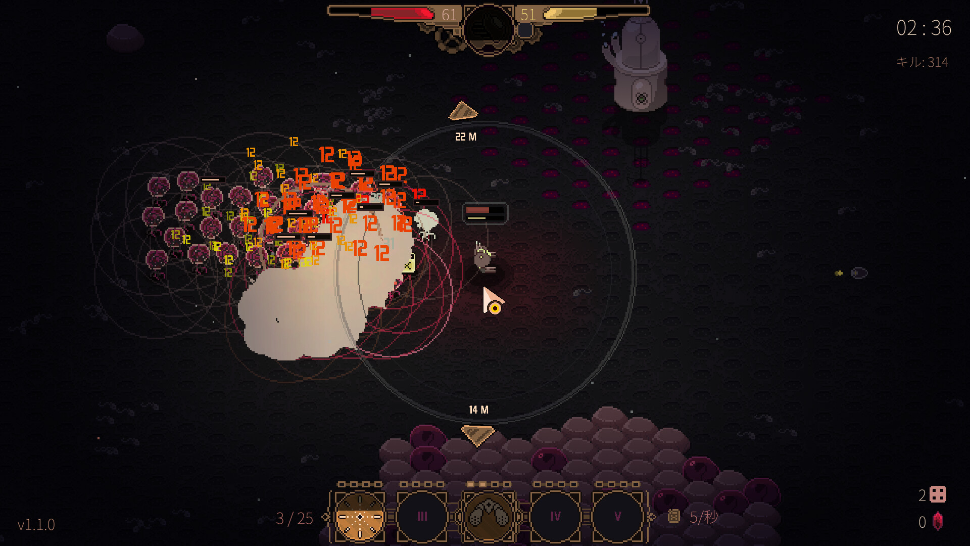 シートベルトを締めて、パイロット!私たちの基地は廃棄された鉱業システムに囲まれた異星の惑星にあります。ここは危険な異星の虫たちで満ちています。あなたの任務はこれらのエリアに深く入り込み、鉱業システムを利用してアップグレードパーツを収集し、異星鉱物からバイオデブリを抽出することです。マップ中には拡散中で孵化を待つ異星の虫の卵が至る所にありますので、迅速に行動してください!