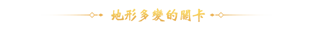 每關地形各異,利用隊友的走位拉怪巧妙佈局,讓敵方落入你的陷阱,或是正面硬剛殺敵方個片甲不留,再結合敵我雙方的金木水火土五行相克,進行更有效的攻防,方能取得完勝。
