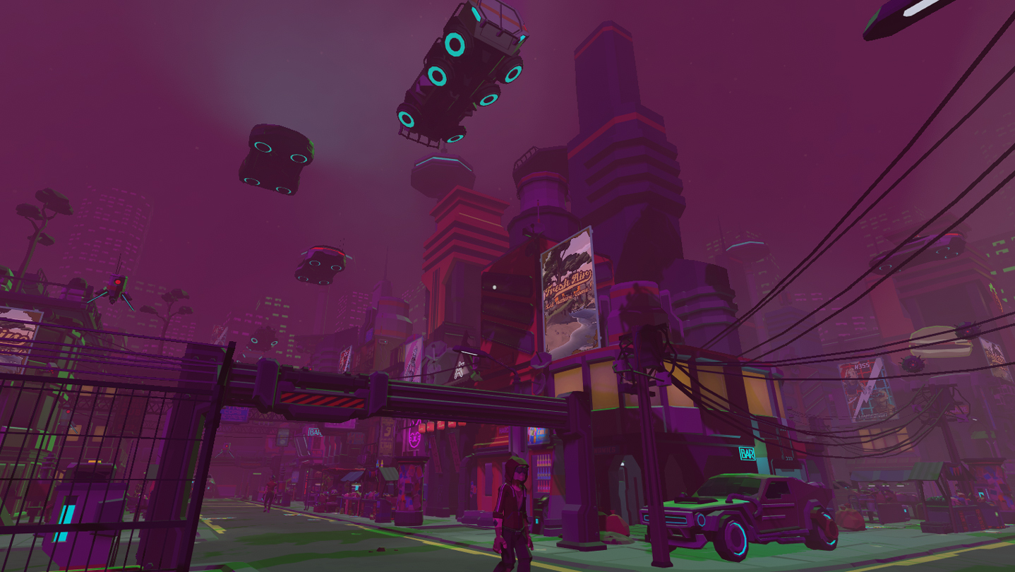 Walk the streets of Eleftheria, a hub for your virtual sessions, and fulfill contracts to buy your next dose.