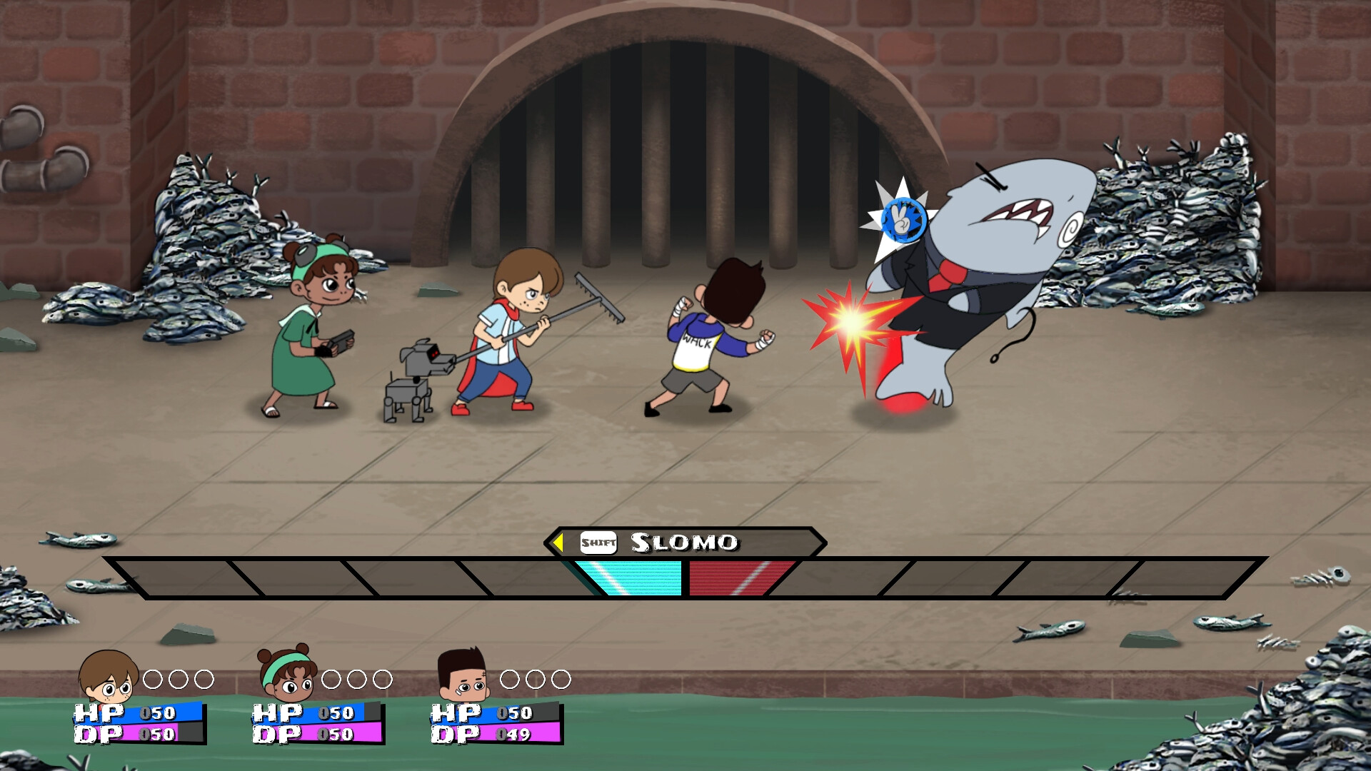 Recruit and travel with five new friends, customize your battle experience with six playable characters, and time your attacks to build your meter, ultimately unleashing powerful duo and trio attacks! The better you do in combat, the better the rewards you receive at the end: more XP, more items, more money!