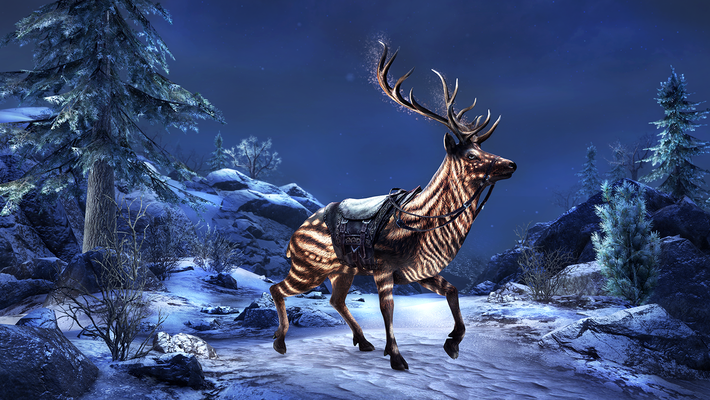 Ride into your Tamrielic journey with the Hailcinder Mount Pack, featuring an exclusive Vale Elk Mount, 3000 Crowns for use in the Crown Store, as well as a Pledge of Mara Scroll to aid in your adventures.
