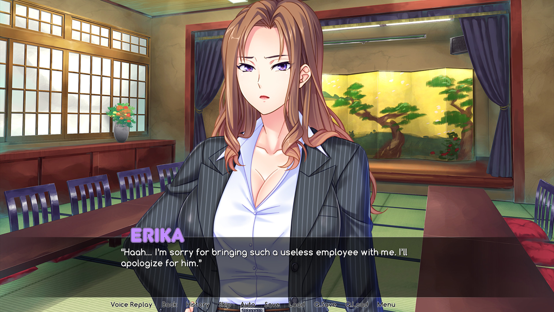 Our protagonist is a typical office worker who is trying his best to power through his boring job despite his bitchy boss' best efforts to seemingly make each day more excruciating than the last. The only thing he can do to escape this painful routine is spend his money on shady apps he finds on the internet! On a day much like any other, his boss Erika is giving him a lecture about his poor performance. Our protagonist finally tries out his latest purchase, a Hypnosis app, and to his surprise it actually works!